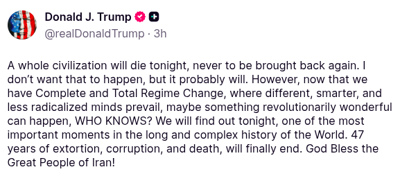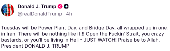 Posted Apr 09, 2026, 3:28 PM -- Truth Social